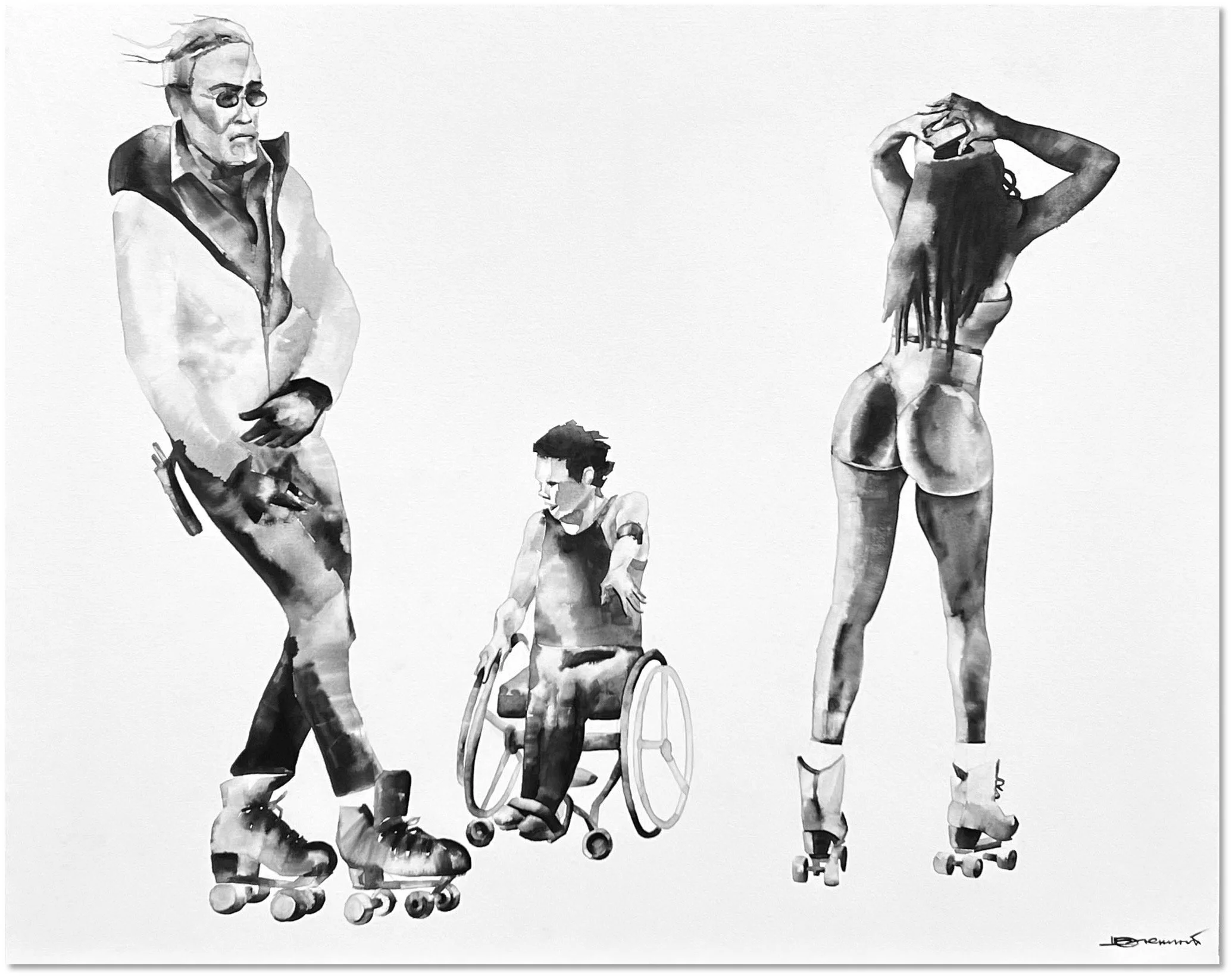 His residency focuses on a new technique in acrylic painting that resembles watercolor.  Each of the six large-scale paintings in his series titled I’m American explore themes of national identity and depict everyday people observed during his few weeks in America.